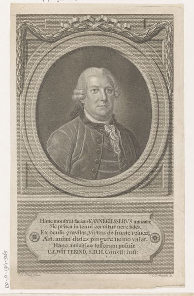 This portrait of Johann Friedrich Jugler was made by Johanna Dorothea Sysang, sometime in the mid to late eighteenth century. It’s an engraving, meaning the artist would have used a sharp tool called a burin to carve lines into a metal plate, which was then inked and printed. Look closely and you can see how the density of lines creates different tones, from the dark background to the lighter areas of Jugler's face and clothing. This was a highly skilled and laborious process, demanding precision and control. Engraving was often used for reproducing images and texts, making information more accessible in a pre-photographic age. But it was also a means of social elevation. The elaborate frame, the flowing script, the depiction of Jugler in fine garments – all these elements combine to present him as a figure of importance and refinement. The print medium, though relatively accessible, here serves to reinforce existing hierarchies. It's a reminder that even seemingly simple materials and processes can be powerful tools in shaping our perceptions.