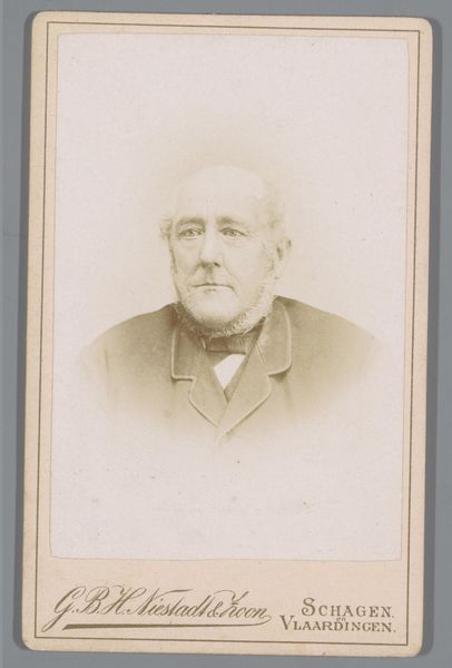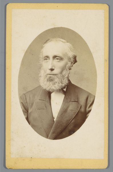 Curator: Before us, we have Julia Margaret Cameron’s "Unknown Man," an albumen print created between 1864 and 1866, now residing here at the Art Institute of Chicago. What are your initial thoughts? Editor: Immediately, I'm struck by a sense of quiet dignity and perhaps a trace of melancholy. The soft focus gives him an ethereal quality, almost like a figure from a dream or a half-remembered historical account. Curator: Absolutely. Cameron’s photographic work, particularly her portraits, was often challenging the Victorian social norms. Her sitters were frequently intellectuals or members of her social circle, which enabled an engagement challenging strict conventions of her era, and promoting artistic vision, against say a record of society's upper crust. The title of "Unknown Man," suggests an egalitarian sentiment that, even unnamed, he is worthy of observation and examination. Editor: I am fascinated by how the artist manipulates the Victorian visual lexicon. The light catching the gentleman's face, particularly around his brow and cheek, speaks to classical portraiture but with Cameron's deliberate use of soft focus, one questions not merely who the man is, but the truth and validity of a portrait in that era, too. Curator: I see your point. Cameron consciously utilized the soft focus as a way to explore the psychological interior of her subjects, something rarely seen. In the mid-19th century photography was already starting to shift access to representation, but was mostly seen as either cheap or highly stylized by artists such as Ingres. Cameron seems to challenge these conceptions. This particular "Unknown Man," is perhaps intended as a counterpoint, inviting the viewer to question notions of class and legacy. Editor: And it’s quite an invitation, because of the beard and clothing this Unknown Man evokes power structures, but that manipulation also complicates readings of patriarchy or power. His serious look and his ornate sideburns give a sensation of importance while the blurring obscures such power. The portrait does not settle upon any meaning. Curator: And through his simple existence as a face we ponder his moment in Victorian England, one of class, status, visibility. Editor: And one of enduring mystery and compelling beauty, really! The choice to leave him unnamed, makes you wonder how many faces have gone missing from our histories because nobody marked them.