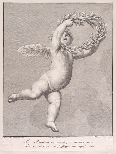 Editor: Here we have Fernando Botero's "Saint Michael Archangel", a painting of, well, a rather uniquely rendered angel. I'm immediately struck by how Botero’s signature style, with those exaggerated, voluminous forms, gives a playful, almost satirical feel to this religious figure. How do you interpret this work through a historical lens? Curator: This piece really makes us consider how representations of power and religious figures evolve across time and culture. Consider traditional depictions of Saint Michael, typically portrayed as a youthful, muscular warrior. Botero subverts this expectation, offering a version that is, as you noted, almost satirical. What statement might he be making about power structures, both religious and secular? Editor: I hadn’t really thought about the subversion of power. Perhaps it’s a commentary on the sometimes pompous or overly adorned imagery associated with religious authority? Curator: Precisely! And notice the setting – a pastoral landscape, quite ordinary, framing this extraordinary figure. This contrast underscores Botero's project of bringing these monumental figures down to earth, engaging them in a dialogue with everyday life. How do you think this affects the viewer’s relationship to the artwork? Does it make it more accessible or more challenging? Editor: I think it’s more accessible. The humor and the unexpected form break down any intimidation that a traditional religious painting might evoke, inviting a more critical and perhaps even affectionate look. Curator: I agree. By injecting humor and a touch of caricature into religious iconography, Botero invites us to question not just the image, but the systems that uphold such imagery. Ultimately, "Saint Michael Archangel" offers a contemporary reflection on faith, power, and representation in art. Editor: This conversation really opened my eyes to seeing art as a social commentary and appreciating the subtle ways an artist can challenge historical and cultural norms.