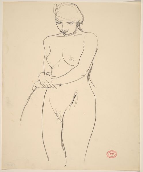 This is an untitled drawing of a female nude, made with graphite on paper by Richard Diebenkorn. Although undated, the drawing likely comes from the mid-20th century, a period when the nude was a contested subject. Diebenkorn was an American artist who navigated between the dominant mid-century movements of Abstract Expressionism and figurative art. He had a long affiliation with institutions such as the California School of Fine Arts, and his works often demonstrate an engagement with the visual culture of the time. Here, the woman’s form is rendered with loose, tentative lines that stop short of idealization, which can be seen as a challenge to the entrenched art historical convention. Her gaze is slightly averted, as if to deny the viewer the pleasure of direct engagement. This approach reflects a broader cultural negotiation with the male gaze and evolving representations of women in art. To better understand this work, scholars may consult exhibition catalogs and critical reviews, as well as broader studies of post-war American art and cultural history. The meaning of art is always dependent on its social and institutional context.