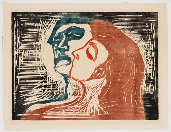 Edvard Munch made this print, "Kiss on the Hair," using a woodblock to lay down these close, dark tones. It’s about intimacy, yes, but there is a bluntness, a rawness that grabs me first. Look at how Munch has gouged out lines—they are like the scratches in a relationship, the bits that aren't smooth. The grain of the wood is right there, not trying to hide. The kiss itself is almost swallowed by the hair, this big curtain of red-brown that seems to blend the two figures together. You can feel the pull of attraction, but also maybe the fear of losing yourself in someone else. It reminds me of Paula Modersohn-Becker, who also wasn't afraid to keep the grit in her work. Both these artists use a kind of visual honesty that’s way more interesting than perfection. Art isn’t about answers; it’s about feeling your way through the questions.