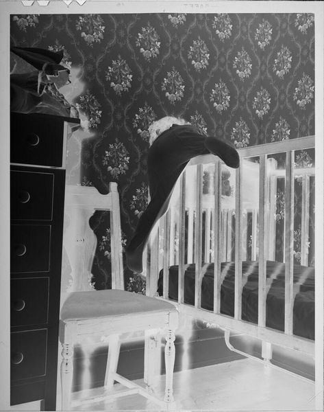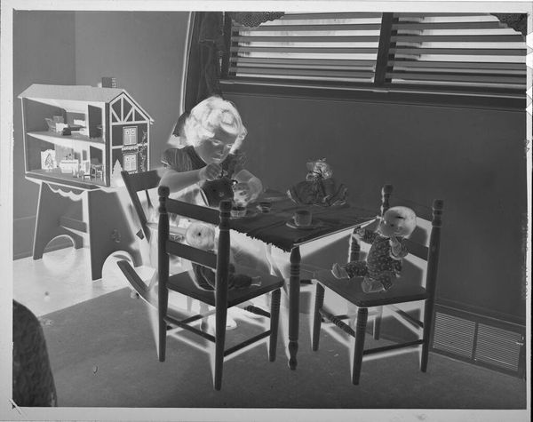 Editor: This is "Untitled (girl playing on stairs)," a silver gelatin print by Lucian and Mary Brown. The girl's playful abandon is striking against the backdrop of what appears to be a domestic interior. What historical or social context might inform our understanding of this image? Curator: This image, although seemingly simple, offers a window into the complexities of childhood and societal expectations. Consider the era in which it was taken; how might gender roles and class structures have influenced the girl's perceived freedom and the spaces she occupied? Does her carefree pose challenge or reinforce prevailing norms? Editor: That's a compelling point. I hadn't thought about the constraints that might have shaped her experience, even within a seemingly innocent moment. Thanks for that perspective! Curator: Absolutely! Art always speaks to us in layers, reflecting both personal narratives and broader social dialogues.
