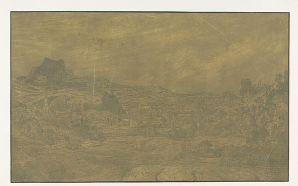 Landscape with a Waterfall, Second Version, was etched by Hercules Segers sometime in the early 17th century, using a technique as mysterious as it is masterful. Segers lived and worked during the Dutch Golden Age, a period of unprecedented economic, scientific, and cultural growth in the Netherlands. Yet, unlike many of his contemporaries, Segers lived in relative obscurity, struggling financially and experimenting tirelessly with unconventional printmaking techniques. Segers's landscapes are not mere depictions of the natural world; they are emotional landscapes, charged with a sense of solitude and introspection. His works often evoke a feeling of melancholy, reflecting perhaps his personal struggles. The monochromatic palette and the rough, uneven textures contribute to this somber mood. Segers printed in color and often on textiles, and each print of this image is unique. Segers’s innovative approach to printmaking set him apart from his peers, and his work was greatly admired by later artists, including Rembrandt. "He went his own way," you might say, with both the freedom and the isolation that path engenders.