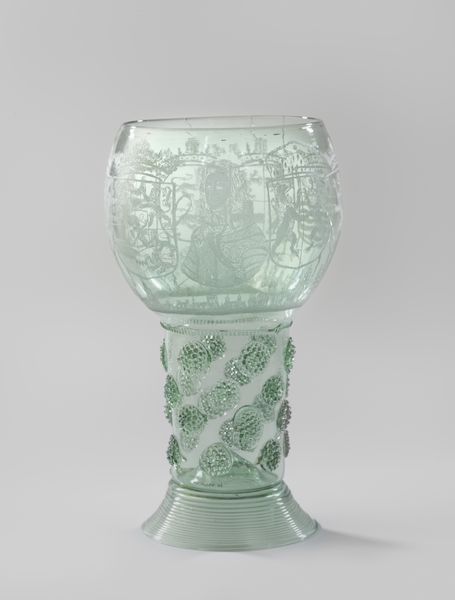 This Roemer glass, now in the Rijksmuseum, is decorated with the coats of arms of Maurice and Prince Phillip William and was likely made in the Netherlands. The precise date of its creation is unknown. Drinking glasses in the 17th century weren't just functional objects; they were canvases for expressing social status and political allegiances. The inclusion of heraldic symbols transforms this glass into a statement of power and identity. Consider the context: The Dutch Republic was a burgeoning center of trade and a hotbed of political and religious upheaval. Who were Maurice and Prince Phillip William? Further research into the figures represented, the symbolism of the coats of arms, and the history of glassmaking in the Netherlands can reveal deeper meanings embedded within this object. Understanding art requires that we consult historical sources and consider the social and institutional forces that shaped its creation and reception. The Roemer is an example of the intersection of art, politics and society.