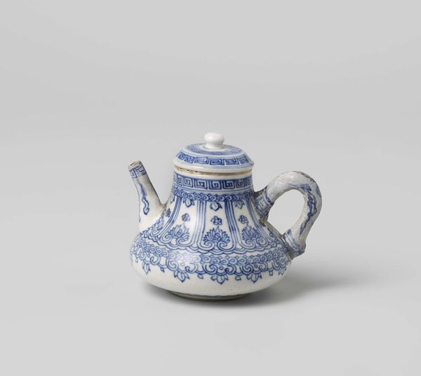 This is a blue-and-white marbled teapot lid, likely from the early 18th century, made by Jacobus de Caluwe. While small, this fragment speaks volumes about the global trade networks of the Dutch Golden Age. Tea was a luxury good, imported by the Dutch East India Company, transforming social rituals and material culture in the Netherlands. Delftware potteries like de Caluwe’s responded to this demand, imitating expensive Chinese porcelain for a burgeoning middle class. The marbled effect, though not directly replicating Chinese designs, reflects a broader European fascination with exotic and luxurious materials. Analyzing the lid’s form and decoration, alongside historical records of trade, probate inventories, and archaeological finds, we gain insights into the social meaning of tea consumption and the dynamics of artistic production in the Netherlands. Art history, then, becomes a window into the economic, social, and cultural transformations of the past.