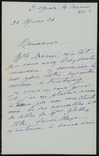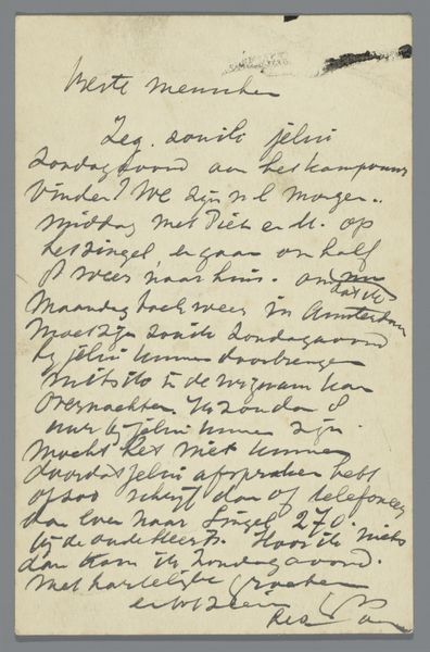 This is a letter, "Brief aan Philip Zilcken", written in 1930 by Lya Berger, probably with a fountain pen, given the ink's even flow. The handwriting is a dance, each word a step in a carefully choreographed sequence. The paper itself, its texture, is just as important as the ink. It's not just a support, but an active participant in the conversation. I can almost feel the smoothness, the slight give of the paper under the pen's nib. Notice the way the ink bleeds slightly into the paper, creating a soft halo around each letter. This is where the personal touch comes in, the imperfection, the evidence of a human hand at work. Look at the slant of the letters, leaning forward, eager to communicate. The loops and curves, the flourishes and abbreviations, are all clues to the writer's personality, their mood, their intentions. I'm reminded of Cy Twombly's scrawled canvases, where writing becomes drawing, and meaning is found in the gesture itself. Art is just a conversation, written, painted or drawn; we are all just responding to each other across time.