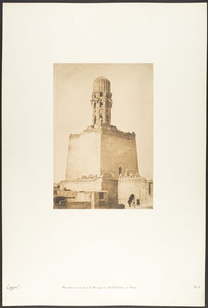 Editor: This gelatin-silver print, taken in 1849 by Maxime Du Camp, is titled "Minaret oriental de la Mosquée du Khalif Hakem, au Caire". The tones create an otherworldly, almost dreamlike quality, but I wonder how its historical context plays into how we view it today. What can you tell me about its cultural significance? Curator: Considering its time, we must look at the rise of Orientalism and how the West portrayed the East. Photography like this became a tool. How might this image have functioned as a document versus something that reinforces existing power structures? Editor: So, it’s less about purely documenting and more about how it’s framed through a Western lens? Are we talking about creating or perpetuating stereotypes? Curator: Precisely. Think about who controlled the narrative. Who gets to represent whom, and for what purpose? Early photography like this often reinforced colonial attitudes by exoticizing the subject and emphasizing the ‘otherness’ of non-Western cultures. Editor: I hadn’t really considered how much power lies behind simply choosing what to photograph, and from what angle. What would this mean for the perception of Islamic art at the time? Curator: The impact was multifaceted. It influenced artistic trends, academic studies, and public perceptions, but it's crucial to understand how images like these played into constructing a particular vision of Islamic art that might not be entirely accurate or representative. Did the artistic establishment validate this vision? And why? Editor: This has completely shifted my view! I need to delve more into the role of visual media in shaping historical narratives and consider it's power to subtly reinforce existing cultural assumptions. Curator: Exactly. It’s about critically evaluating these images as historical documents and recognising their potential biases. There is power and potential for manipulation.