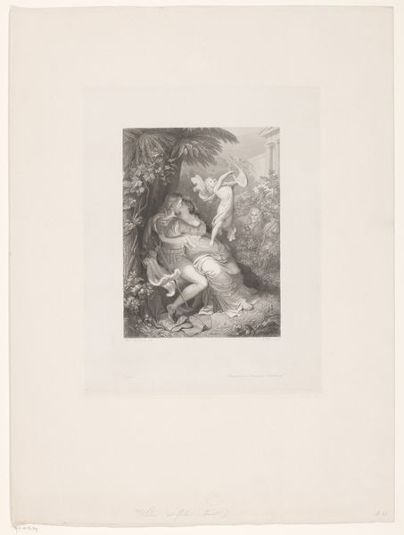 Christoph Preisel created "Alexis en Dora," a print which encapsulates the romanticism of the 19th century. Preisel, born in 1818, lived through a time of significant social and political upheaval, where notions of love and relationships were evolving. The embrace between Alexis and Dora, set against the backdrop of classical motifs, speaks volumes about the era's fascination with idealized love. However, the work goes beyond mere representation. Preisel’s figures, caught in a tender moment, invite us to consider the power dynamics inherent in romantic relationships. Are they equals or is there a subtle tension between them? The seemingly idyllic setting, reminiscent of a utopian past, is in stark contrast to the reality of Preisel's contemporary society, where class divisions and social inequalities were pervasive. The embrace, therefore, is a projection of a longing for connection and equality in a fractured world. This print captures a moment of longing and the desire for a more equitable world.