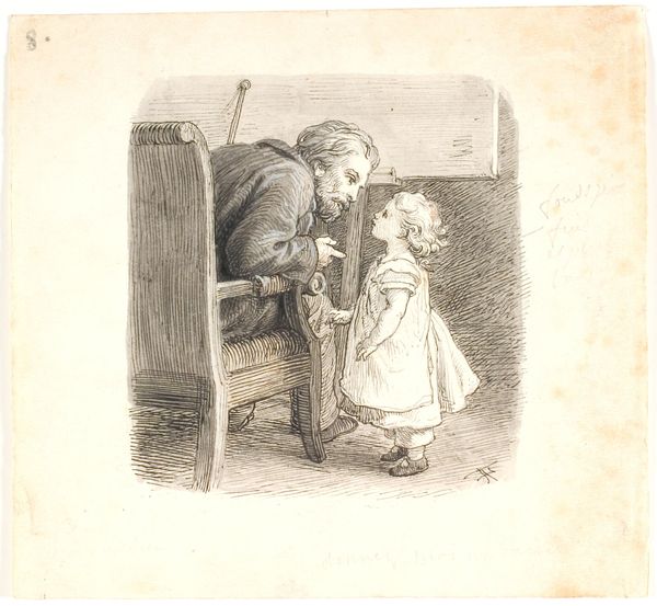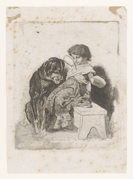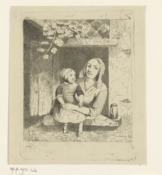Seymour Joseph Guy created "Look Mama!" with etching on paper. The composition centres on two figures, with a limited tonal range that brings a sense of intimacy to this domestic scene. The child’s bright eyes and the mother’s pensive gaze draw us into their world. The girl points towards something unseen, creating a sense of dynamism, while the mother seems lost in thought. The poses and expressions are carefully constructed, the artist perhaps challenging traditional notions of portraiture. The linear quality of the etching technique renders the textures of the clothing and the landscape, revealing the underlying structure of the scene. It is through these formal elements that Guy suggests the nuances of human connection. The simplicity of line and form allows us to focus on the expressions and gestures. The work serves as a study in contrasts, with the figures set against the soft backdrop of nature. Ultimately, the work is a statement on the complex semiotics of family life.