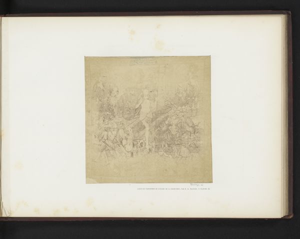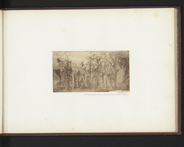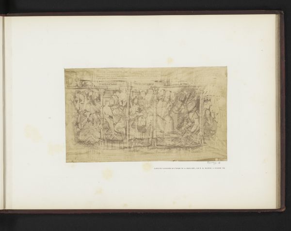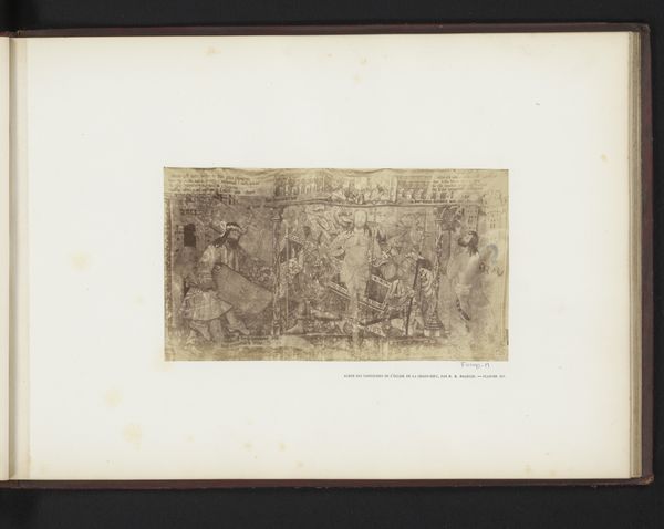 Hippolyte Malègue's rendering captures a tapestry depicting the crucifixion in La Chaise-Dieu church, its subdued tones and dense composition evoking a sense of solemnity. The artwork's power lies in its intricate layering of figures and architectural elements, creating a rich, textured surface that invites close inspection. Malègue masterfully uses line and tone to navigate the complex iconography of the crucifixion. The formal choices may reflect a broader interest in the structuralist interpretations of religious narratives, where underlying patterns and symbolic relationships convey meaning. The detailed rendering of the tapestry's design and figures presents the artwork as a semiotic system, challenging viewers to decode the tapestry’s interwoven symbols and their cultural significance. The tapestry becomes not just a depiction of a historical event but a site of ongoing interpretation, inviting us to consider how meaning is constructed through visual form and cultural context.