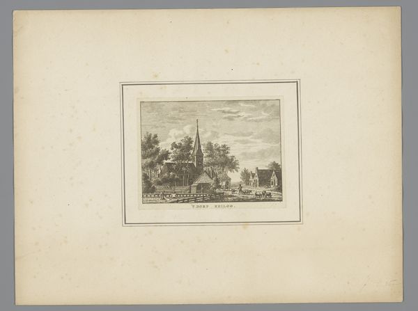 Curator: This etching by Hermanus van Brussel, "Gezicht op de kerk en ruïne van de Abdij van Rijnsburg," likely made after 1815, presents a compelling juxtaposition. Editor: It's a landscape steeped in a somber nostalgia. The delicacy of the etching technique only seems to amplify the ruins, hinting at lost grandeur. I find my eyes are drawn immediately to the darker sections depicting decay. Curator: Exactly. Notice how the church, seemingly intact, rises in the distance while the ruined abbey occupies the foreground. The piece evokes the popular Romanticist themes, playing on a tension between permanence and the ephemeral. Editor: Yes, and it’s not merely architectural. See how the humans almost melt into the scenery. Those small figures hint at nature reclaiming everything—a rather potent visual metaphor for mortality itself. Is that optimism in the steeple juxtaposed with fatalism in the rubble? Curator: Interesting! One can see it that way. But, you see, that juxtaposition creates something uniquely intriguing here, and pushes toward considering cultural memory. We are invited to see time both as destroyer and preserver, simultaneously. The ruined abbey carries immense history, even in its decrepitude. Editor: You’re right; there's an implied narrative—centuries collapsing into a single frame, a quiet observation of change. How very Romantic! And even a bit political, considering this work comes after years of French occupation. Curator: Yes, landscape wasn't merely about the view. The church in the backdrop offers stability, continuity perhaps? It anchors the community amid what remains of past upheavals. It suggests life continuing despite destruction. The steeple’s also just a nice, humanizing little detail, right? Editor: Absolutely. In those clustered symbols—decay, piety, endurance, humans as a blip on time's radar—it does create a powerful silent narrative. There’s hope mingled with profound melancholic acknowledgement. It gets under your skin! Curator: Precisely. Van Brussel captured more than just a place; he captured a mood, a meditation. It's a quiet yet evocative landscape that invites contemplation on time, loss, and enduring spirit. Editor: Yes. Looking at this etching makes me wonder how future generations will regard our own ruins...what stories will they find imprinted there? It's a compelling piece, steeped in layers of memory and implication.