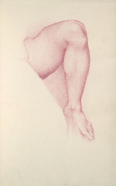 Editor: This is Edward Burne-Jones's "Nude Seen from Behind; verso: Figure Studies," housed at the Harvard Art Museums. The red chalk gives the figure a sense of warmth, but it also feels quite academic and restrained. What can you tell me about the context of this piece? Curator: Burne-Jones, a key figure in the Aesthetic movement, was deeply engaged in a debate about the role of beauty in art. Drawings like this provided foundational studies that supported his idealized visions. How do you think the Victorian art establishment received such works? Editor: I imagine there would have been conflict, being both drawn from life but also idealized. Curator: Precisely. The tension between academic tradition and the evolving notions of beauty and sexuality in Victorian England becomes very apparent here. Such studies became both a tool and a statement. Editor: I see how it challenges our modern view of the period. Curator: Indeed. It underscores that art, even seemingly simple sketches, is always enmeshed in complex social and political dialogues.