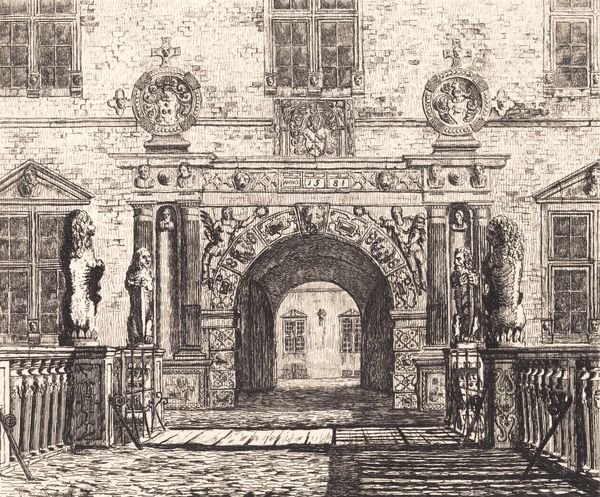 Thorald Læssøe created this drawing of the gate at Vallø, its date unknown, with pen and ink. The scene is dominated by the imposing architectural structure of the gate itself, rendered with meticulous detail. The artist uses fine, precise lines to define the stonework, sculptures, and decorative elements. Læssøe’s approach to this architectural subject is rooted in the observation and careful depiction of form. He invites the viewer to consider the gate not just as a functional entry point but as a complex interplay of shapes, textures, and patterns. The archway, flanked by sculpted figures and intricate carvings, creates a sense of depth and perspective, drawing the eye inward. Through his choice of medium and technique, Læssøe emphasizes the inherent qualities of the built environment. He prompts us to engage with the aesthetic dimensions of architecture and its capacity to evoke a sense of history, culture, and human presence.