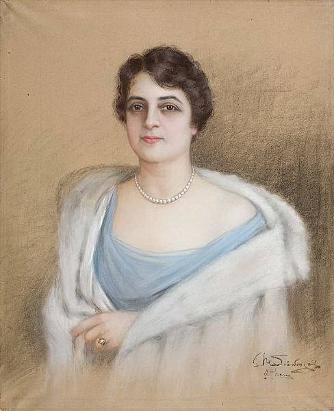 Philip Alexius de László made this portrait of Iphigenia Wise Ochs with oil on canvas. Look at the paint handling, it’s all about smooth blending, not a trace of brushwork to disrupt the surface, which gives it a kind of old-school formality. The dark background and clothing make the emerald jewelry and silvery hair pop, which is a smart move. But it’s the sheer fabric draped over her shoulders that grabs my attention. It's painted with such delicate, almost transparent washes of color. You can practically feel the light filtering through it. It reminds me of John Singer Sargent, another portraitist who knew how to make paint sing. But where Sargent is all about bravura brushstrokes, de László is more restrained, more focused on capturing a likeness. Still, there's a certain magic in the way he uses paint to capture the essence of a person. Art is always a balancing act, a conversation between different approaches and ideas.