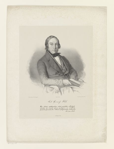This is J.B. Clermans’ portrait of J. Staats Boonen, made using an engraving technique. The subject's gaze is directed to the left. The image strikes you with its formal austerity. The composition is neatly structured to focus attention on the sitter's face and upper body. We see fine lines and subtle gradations of tone that define the subject’s features and clothing. There's a clear emphasis on form and contour, which creates a sense of volume and depth. The cross on his coat is a signifier of status and perhaps a challenge to prevailing social norms. Clermans doesn't simply reproduce an image; he uses a semiotic system of signs and symbols to convey information. It challenges the viewer to consider the cultural and social context. The portrait itself is a powerful medium for representing identity. It invites us to examine the values and codes that shape how we perceive others and ourselves. The subdued palette and careful rendering of texture contribute to a viewing experience that is rich in detail. We are reminded that meaning is not fixed but emerges through ongoing interpretation.
