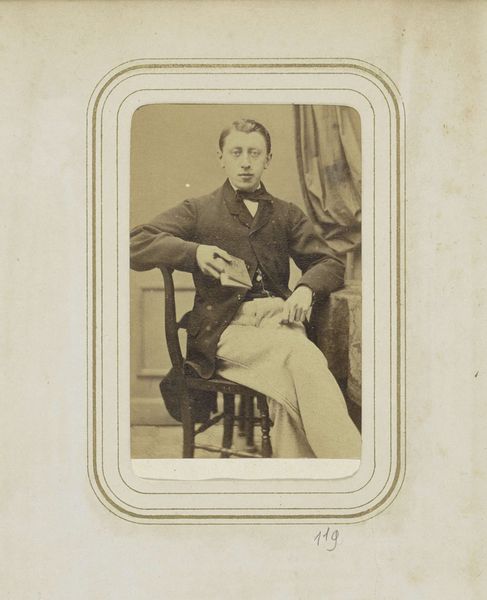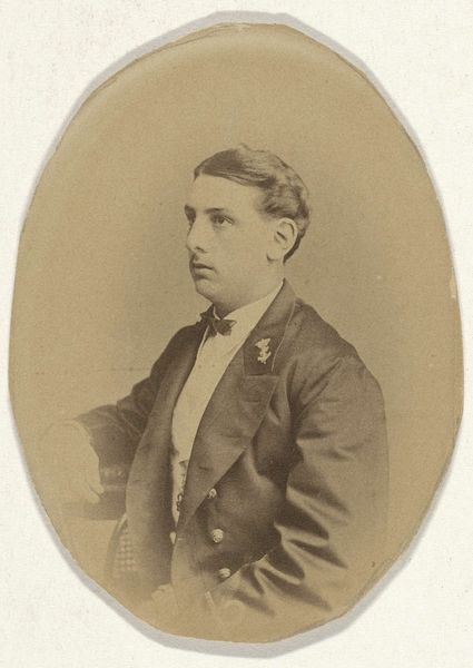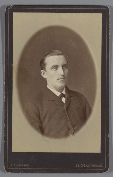 Curator: Here we have Maurits Verveer's "Portret van een man met een stropdas," a captivating albumen print dating from somewhere between 1861 and 1883. It currently resides here at the Rijksmuseum. Editor: My first impression is one of quiet dignity. The tonality is quite subdued, emphasizing the man's reserved expression and careful pose. There’s a strong sense of formality, a compositional stillness. Curator: Indeed. During this period, photography became more accessible to the middle classes, and portraits such as these were commissioned to project a specific social standing. The inclusion of a tie, relatively novel for the time, marks him as a modern gentleman. Editor: Semiotically, then, the tie functions almost like a signifier of middle-class ambition and modernity, subtly broadcasting the subject’s place in a shifting social landscape. Notice how the crisp, well-defined lines of his coat create a visual framework, a sort of stage upon which he presents himself. Curator: It is crucial to recognize that photographers such as Verveer played a key role in the construction of national identity during this period, presenting idealized versions of Dutch citizenry through portraiture. How might these images contribute to, or even contest, societal hierarchies and norms of representation? Editor: Well, the photographic technique itself flattens the three-dimensional space. That transforms this individual into a reproducible image that becomes a form of cultural currency—his identity circulating, viewed, interpreted. Look closely and the gentle blurring adds an aura of distance. Curator: Interesting point. To further examine the production value, let’s contemplate its display context: within the Rijksmuseum. How does being displayed within a historically esteemed collection influence its interpretation versus a private family collection? Editor: Excellent question. A museum display elevates the subject beyond just a personal remembrance, transforming the portrait into an artifact reflective of 19th-century bourgeois values, anxieties, and aesthetic conventions. The framing becomes just as crucial as the figure it contains. Curator: I agree. It highlights the complexities inherent in photographic portraiture and provides important perspectives to analyze cultural constructions of identity and class during that era. Thank you for your input. Editor: Thank you, I’ve certainly come to view this image with a fresh, informed perspective.