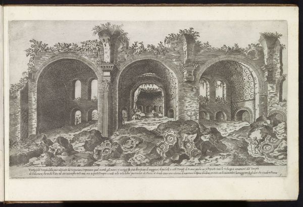 Editor: Here we have Simon Fokke's engraving, "Ruïne van de Grote Kerk van Bergen op Zoom, 1748," made sometime between 1772 and 1780. The devastation depicted is palpable. Looking at the skeletal remains of this grand church, I wonder about the story of its destruction. What can you tell me about it? Curator: This piece invites us to reflect on the fragility of power structures, both physical and societal. It isn’t simply a depiction of ruin; it’s a visual statement on the cyclical nature of history, destruction, and rebirth. This engraving, made decades after the depicted ruin, makes me consider how the people understood concepts such as trauma, war, and identity. Considering the social climate of the Dutch Republic, what message might Fokke be trying to communicate to his audience? Editor: So, it's not just about documenting damage but perhaps commenting on the forces that led to the ruin? I hadn't thought about it in that light. Curator: Exactly. Look at how Fokke frames the scene. There is a detailed depiction, inviting us to contemplate its loss, but consider what power dynamics may have contributed to that event. How does this scene reflect the shifting powers of the Dutch Republic in that era? What voices were silenced as the church crumbled? Editor: I see what you mean. The broken arches could symbolize broken systems of power, too. It really makes you question the permanence of institutions. Curator: Indeed. And remember that engravings like these often served a didactic purpose. Fokke isn't just showing us a ruin; he's prompting us to consider the ethical dimensions of conflict and the long-term impacts on a community's cultural identity. It’s also about who gets to tell the story of the ruins. Editor: I'll definitely remember to consider these sociopolitical dimensions when looking at historical artworks from now on. Thanks! Curator: And I’ll continue to remind myself that historical work requires a sensitivity for a society's history of change.