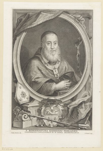 Editor: Here we have "H. Lucas," an engraving by Lucas Kilian, dating back to 1629. It strikes me how incredibly detailed the lines are, especially considering it’s a print. What can you tell us about this piece? Curator: The density of those engraved lines speaks volumes about the labor involved. Each one is a physical mark, a testament to the artisan's skill and the sheer time investment in reproducing this image. Consider the social context: engravings like these weren’t simply 'art' but served a crucial role in disseminating knowledge and religious iconography across society. Editor: So it’s not just about the image of Saint Luke, but also about the printmaking process itself? Curator: Precisely. Think about the production. Copper was relatively costly; the engraver's tools, specialized. Who commissioned this? Who was the intended audience? These factors dictate the very existence of the print. It's also significant that it mimics the style of much earlier woodcuts and engravings to create a look of age, value, and veracity to both itself and the church's figureheads. Editor: The way you describe it makes me realize how many economic and social aspects are embedded within the work's creation. Curator: Right. What kind of consumer culture existed for devotional images like this? What was the relationship between artist and patron, and what social narratives about work do the aesthetics carry? Examining these factors breaks down traditional notions of artistic genius. Editor: It shifts the focus from individual expression to a collaborative, almost industrial, undertaking. Thanks, that’s given me a whole new appreciation for engravings! Curator: Indeed! Considering art's means of production illuminates the economic and social contexts in which it's made.