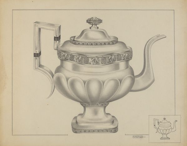 This drawing of a teapot was made with pencil and watercolor, by an anonymous artist, and is filled with such a sense of calm, I want to take a nap next to it. The use of a limited color palette, soft blues and grays, along with the rendering of light and shadow, makes the metal object look like it’s glowing softly. Look closely at the base of the teapot. See the line of circles along the bottom edge? The artist’s repetition of these shapes and lines feels so soothing. This element makes the entire piece, for me, it is a study of craft as a meditative process. The drawing is a reminder that the simplest of objects, like a teapot, can be a source of beauty and contemplation. It reminds me a bit of Giorgio Morandi, with his quiet still lifes of bottles and jars. Both artists share an ability to find endless interest in everyday objects, celebrating the subtle nuances of light, form, and texture.