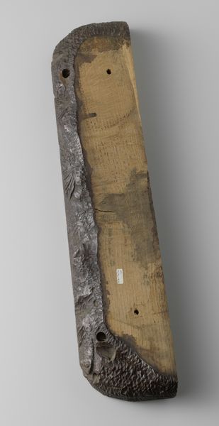 This terracotta fragment of a kylix, or drinking cup, was made by Makron. The fragment’s surface displays a series of parallel black lines set against the warm, earthen hue of the terracotta. This simple yet striking composition invites us to consider how linear elements can define form and texture even in the absence of representational imagery. The repetition of the lines, broken only by the fragment's irregular edge and the dark, solid form in the corner, creates a rhythmic pattern. This pattern engages with the vessel's original function as an object handled and viewed in motion. The lines aren't merely decorative. They reflect an awareness of the interplay between surface, structure, and perception. The fragment challenges our understanding of completeness. It prompts us to consider how even a part can evoke the whole. This piece stands as a testament to the enduring power of simple forms and their capacity to communicate complex ideas about space, surface, and the very nature of perception.