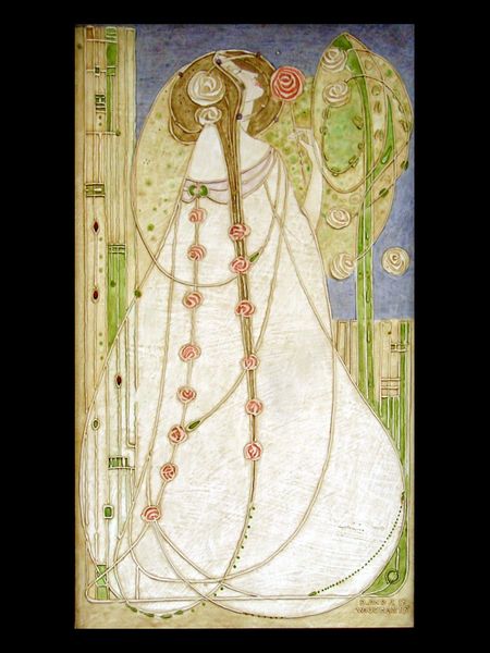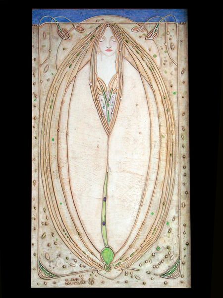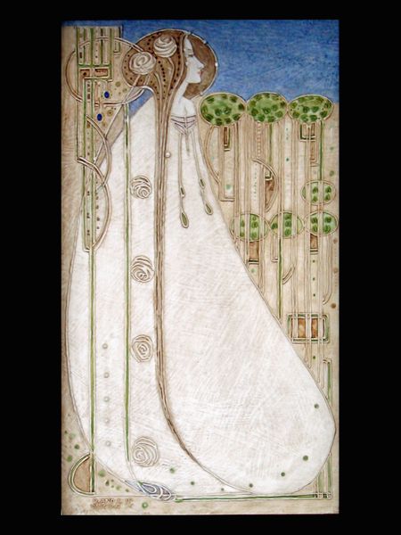 Charles Rennie Mackintosh made this design for a dining room in Glasgow, and its mix of watercolors and pencil feels both precise and dreamy. There’s something so satisfying about the earthy palette, those muted blues and greens that feel totally natural, almost like looking at moss or a cloudy sky. But then he throws in these pops of rose, these floral motifs, and suddenly it’s elevated, it’s romantic. I like the way he uses line, too, the way those vertical lines cascade down, they're like rain. Look at the way those lines seem to drip, almost like the pigment is still wet. It’s so delicate. It reminds me a little of Klimt, actually, the way he mixes ornamentation with really raw, organic shapes. It’s like Mackintosh is saying that decoration is part of nature, it’s not something separate, but something that grows and evolves. It's a conversation that continues.