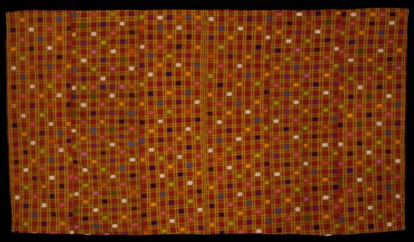 Here, at the Minneapolis Institute of Art, is an anonymous shawl that invites a unique visual experience through its composition, shape, color, materiality and texture. The use of visual elements evokes a gentle emotional response, as its design reflects both tradition and an exploration of visual language. The shawl’s design can be dissected through a structuralist lens, where the seemingly random motifs form a cohesive pattern. Semiotically, each motif acts as a signifier, potentially referencing cultural or personal meanings woven into the fabric, though the original intent remains elusive due to the artist's anonymity. The lack of a singular narrative allows for multiple interpretations, challenging the notion of fixed meanings. The overall effect is a textile piece that functions aesthetically and prompts ongoing interpretation, engaging us in a broader dialogue about cultural expression.