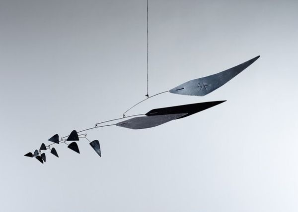 Editor: Here we have Bruno Munari's *Useless Machine*, made in 1947. It’s a mobile, constructed from paper and metal, with abstract, reddish, geometric shapes suspended in space. The piece strikes me as so elegantly simple, almost playful in its defiance of functionality. What do you make of it? Curator: It's a fascinating work, especially considering its historical context. Think about post-war Europe, a period grappling with the role of technology and industry after immense destruction. Munari, through this "useless" machine, seems to be critiquing the blind faith in progress that had led to such devastation. He is asking us to consider art's place amidst these shifts, to value playful inquiry, even when "useless," over relentless production. Editor: So, it’s a commentary on the dangers of unchecked technological advancement? Curator: In a way, yes, but it’s not just a straightforward condemnation. Consider how the piece engages with the Constructivist movement while subtly undermining its utopian ideals. Constructivism aimed to fuse art with industry. Munari co-opts the aesthetics—the geometric forms, the industrial materials—but he drains it of its productive function, presenting instead pure, whimsical movement. How do you think that gesture would be received in a society just starting to accept Modernism and abstract art? Editor: I imagine it would have been pretty subversive. Almost poking fun at the seriousness often associated with art, by presenting something intentionally pointless. Curator: Precisely. It compels us to re-evaluate the social and institutional functions of art. Is art meant solely to serve a practical purpose, or can it hold value simply by existing and prompting thought? The title is a direct, and likely intentionally inflammatory, commentary. Editor: That's such a clever approach. It makes you think about what we expect from art and how those expectations are shaped by cultural and historical forces. Curator: Exactly. It highlights how art museums play a role in shaping how we engage with political concepts of production. I didn’t consider Munari to be humorous previously, but I do now. Editor: Well, I certainly learned a lot about the hidden complexities in its simplicity. I am also pleased you found it humorous.