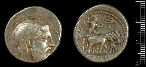 Curator: The Harvard Art Museums hold this fascinating artifact: a Stater of Philip II of Macedon, Amphipolis, made of gold. Editor: There's an earthy, ancient feel, but that chariot scene is powerfully dynamic, isn’t it? Like condensed energy, captured in gold. Curator: Indeed. These staters were not just currency. They were propaganda tools. Philip II, father of Alexander the Great, used them to broadcast his military victories. Editor: So, this head, crowned with laurel, is likely a depiction of Apollo, aligning Philip with divine authority, while the racing chariot celebrates his Olympic wins? Curator: Precisely. These coins, circulated widely, reinforced Philip’s image as a victorious leader, legitimizing his power and influence. Editor: Thinking about the number of hands this little golden disc passed through...it’s amazing how much history a single object can embody. Curator: It truly is. And for me, I see a lasting testament to the human drive for legacy, captured in a coin's gleam.