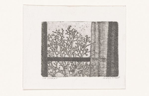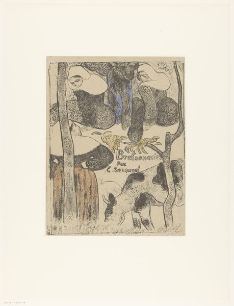 Curator: This is Theo van Hoytema's "Omslag voor: Theo van Hoytema, Het leelijke jonge eendje," created before 1893. It’s currently held here at the Rijksmuseum and made using drawing, graphic arts, print, and linocut techniques on paper with ink. Editor: Striking, isn't it? The stark contrast between the two panels creates a compelling duality. On one side, we see elegance, grace, the clean lines of a swan, a lone flower…and on the other side we see density. An interwoven floral, fauna and a mythical fairy world—quite heavy, even oppressive by contrast. Curator: Absolutely. And thinking about that contrast materially: the swan is a linocut, simplified for quick reproduction and a larger audience. Note also, this was designed as an illustration for a children's book, likely produced and distributed relatively widely. It emphasizes Art Nouveau’s commitment to democratizing design by bringing it into everyday life. Editor: Yet within those accessible images lies symbolic depth. Swans, of course, carry connotations of grace and transformation; there is perhaps also, that famous idea of a swan song and its connotations with grief and tragic beauty. What is most appealing about this image to me, is this interplay. We are at once aware of Hoytema, the maker of popular image as well as the conveyer of very deep symbolic content. Curator: Precisely. This cover operates on many levels—on the level of popular imagery, and accessible narrative on one hand. However it’s clear Hoytema thought of labor involved in production; how each linocut mark contributes to the overall design. What's fascinating here is his attention to the relationship between mass production and handcraft and between art for art's sake and art for all. Editor: And isn't that duality itself central to the “Ugly Duckling” story? That journey of self-discovery, of revealing inner beauty beneath a perceived lack? Curator: Exactly! Hoytema uses this format to reinforce that central theme—the cover invites children into the world, but gives adults another level of interpretation too, reminding them that everything from bookmaking to mythical stories operate on multiple levels of reality. Editor: Indeed. A compelling insight into Art Nouveau's complex dialogue between accessibility, artistry, and deep, enduring symbolism.