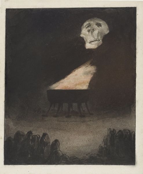 Editor: So, here we have an artwork called "Three Monks Crossing a Bridge Over a Cataract," date unknown, and by an anonymous artist. It seems to be rendered in ink, graphite, and gouache on paper. There's a sense of precariousness...like, this could all collapse at any moment. What do you see in this piece, particularly regarding the social or historical implications of the journey portrayed? Curator: The precariousness you point out is key. What kind of society necessitates such perilous crossings, particularly for figures seemingly dedicated to spiritual life? Notice how the natural world dominates; the monks appear dwarfed, almost insignificant against the overwhelming power of the cataract. This tension speaks to broader societal struggles between humanity and nature, faith and doubt. Editor: That makes sense. So, the monks' vulnerability could be symbolic of a more universal vulnerability? What about the choice to depict them as monks, specifically? Curator: Exactly! And consider the historical context: what role might religious figures have played during times of upheaval or societal instability? Were they figures of resistance, of comfort, or perhaps complicit in existing power structures? This image prompts us to question their position within a specific social and political landscape, challenging the romanticised notion of monastic life as purely detached from worldly concerns. Also, who did they serve? Were they for the privileged or for everyone? Editor: Interesting! It makes you think about who these monks were, where they were going, and why this dangerous path was their only option. It shifts my perspective completely! Curator: Precisely! It’s in asking these difficult questions – about power, about vulnerability, about the roles individuals play in shaping their world – that we unlock the full potential of art to illuminate our past and challenge our present. It teaches us humility. Editor: I never would have looked at it that way, seeing the potential questions regarding power and historical role through the artist's selection and medium. Thanks so much for opening my eyes.