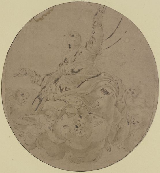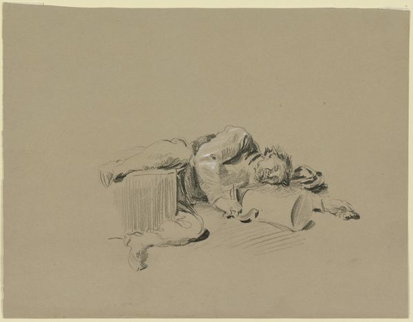 Editor: So, this is "Child in a Landscape" by Charles Robert Leslie. It's a watercolor drawing that dates roughly from 1794 to 1859. The overall effect is one of fragility, like a fleeting memory. What do you see in this piece that might tell us about its historical context? Curator: The portrayal of childhood is particularly interesting here. In this era, we see a real shift in how children are represented in art and, arguably, in society. Do you notice how the child is depicted? Not as a miniature adult, but with a focus on innocence and a kind of idealized connection with nature? Editor: Yes, there’s definitely that sense of innocence. It feels like Romanticism, the way nature seems to reflect the child’s purity. Curator: Exactly. And think about the emerging social attitudes towards children during this time. There's a growing emphasis on their education, their well-being, and protecting their innocence, led in part by artists representing them in particular ways. Can you see hints of that reflected in the way this child is presented to us? Editor: Now that you mention it, there is something deliberate about it, something… staged almost? Like the artist is trying to convey a specific message about childhood. Curator: Precisely. It's a constructed ideal. Consider, too, who this artwork might have been for. Was it a private commission meant to reflect pride in a family? Or could it be part of a larger social commentary? The McGuire Scrapbook suggests a more personal context, but even private art engages with public ideals. What does the landscape surrounding the child contribute to your understanding? Editor: I hadn’t really considered the scrapbook context. That really does suggest a different reading of the image! Thanks! Curator: It’s all about connecting the personal and the political. Reflecting on art this way really helps us understand the social dialogues of the time.