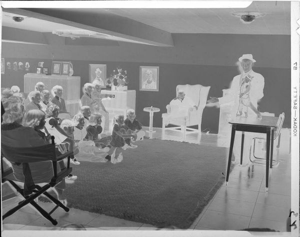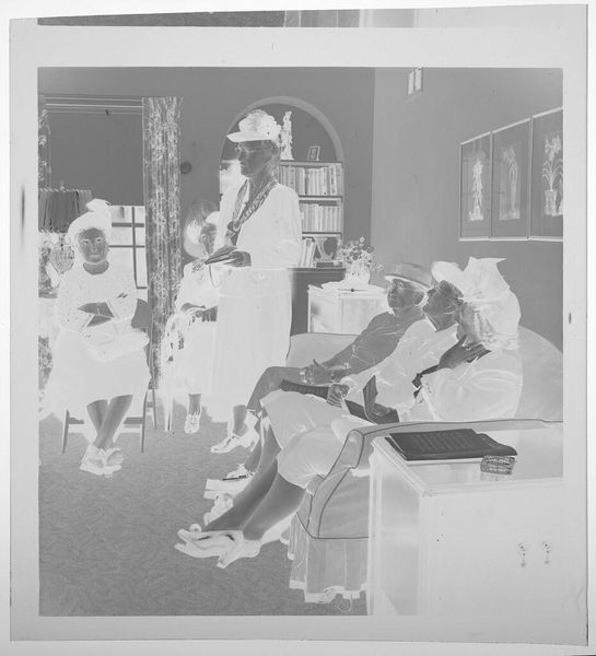 Editor: This untitled photograph by Jack Gould captures what appears to be an elderly women's meeting. There's a formality to it, with the similar hats. What do you see in this image? Curator: The hats immediately resonate, evoking the uniforms of bygone eras. They function as symbols of belonging and shared identity within this organization, perhaps offering a sense of purpose and continuity in later life. Editor: That’s a great observation! The hats do seem to create a sense of unity. Curator: Precisely! These visual cues offer a glimpse into the cultural memory these women carry and actively maintain through their gathering. Editor: I hadn’t considered that. Thanks for helping me see the deeper symbolism at play here. Curator: My pleasure. It's fascinating how seemingly simple images can reveal so much about cultural identity and social structures.