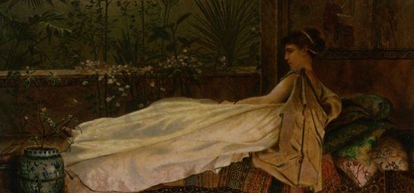 Guillaume Seignac composed "An Afternoon Rest," likely in the late 19th or early 20th century, using oil on canvas. Here, a reclining woman dominates the visual space, her figure draped in sheer fabric and deep purple cloth, set against a backdrop of lush greenery and distant water. The soft brushwork and delicate rendering of light create an atmosphere of serene languor. The composition is structured around a contrast between the cool, muted tones of the natural landscape and the warmer, more vibrant colours of the woman's figure and clothing. This contrast not only draws our eye to the central figure but also suggests a tension between the idealized beauty of the subject and the natural world. Furthermore, the reclining pose and classical drapery evoke a sense of timelessness, linking the artwork to earlier artistic traditions while subtly subverting them through its emphasis on sensuality and repose. Ultimately, the painting uses formal elements to create a space where classical ideals meet contemporary sensibilities, challenging us to reconsider traditional notions of beauty and leisure.