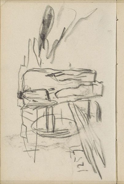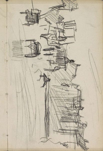 Editor: Here we have "Figures by a Bridge" by George Hendrik Breitner, made around 1909. It's a pencil and graphite drawing currently residing in the Rijksmuseum. It feels like a fleeting moment, quickly captured. What do you see in this piece? Curator: The rapid, almost frantic lines immediately suggest a study in process. Breitner wasn’t concerned with polished realism, but more interested in the act of seeing and recording. Consider the materiality of the drawing itself: the graphite, the paper, and Breitner's hand working in concert to quickly translate the urban environment. It invites the question: how does this immediate, almost disposable medium affect our understanding of the final product? Editor: That's a good point. The sketch-like quality makes me wonder, was this a study for something larger, or was the act of drawing itself the primary focus? Curator: That’s the crux of it, isn’t it? We often elevate painting or sculpture, products that take extensive time and resources, as the pinnacles of artistic achievement. But what about the preparatory sketch, born out of immediate observation and rendered with readily available, 'lesser' materials? How does this shift our understanding of value within the art world? The fleeting nature emphasizes the everyday life of the people depicted; are they commodities or actors of production? Editor: So you are less interested in what is being depicted (people on a bridge), but more about what it tells us of the making of art? Curator: Exactly! Look at the labor involved – both Breitner’s physical act of drawing and the implied labor of the figures within the cityscape. What materials are these people using? What are they producing? Breitner captured an impressionist take on the daily work and effort inherent within this urban scene. Editor: This definitely challenges my conventional understanding of Impressionism as pretty landscapes, and reveals something more grounded. Curator: It’s important to remember that even fleeting impressions have material and social roots.