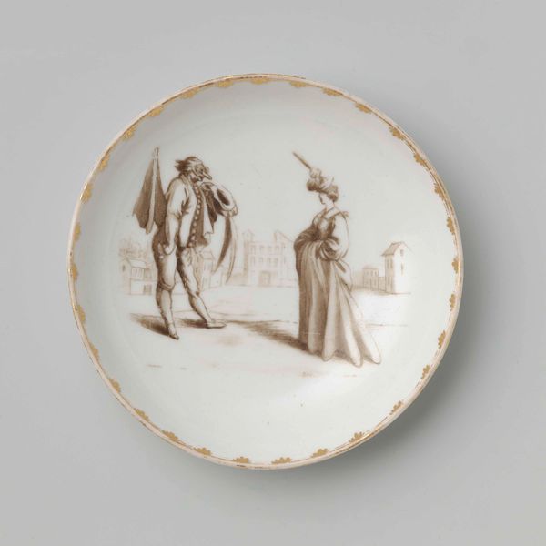 This is a tin-glazed earthenware plate, made in the Netherlands, depicting the temptation of Christ in the desert. It's fascinating how biblical scenes found their way onto everyday objects. The image shows a moment from the Gospel of Matthew. Here, Satan, disguised as a common peddler, tempts a fasting Christ to turn stones into bread. Angels attend Jesus, a testament to his divine protection. We see a society steeped in religious imagery, where even the most mundane objects served as constant reminders of faith and morality. These plates were common in Dutch households and were often displayed. The imagery was not just decorative, but also instructional. As historians, we can use probate inventories, religious pamphlets, and other archival materials to understand the role of these objects in shaping the religious imagination of ordinary people. Ultimately, this plate invites us to reflect on the intersection of faith, commerce, and daily life in the Dutch Golden Age.