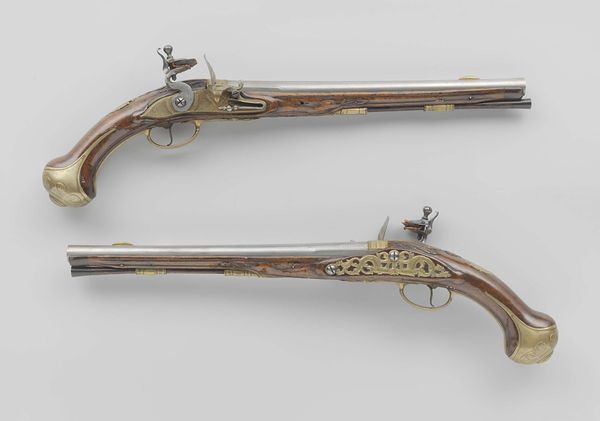 Here is a pair of flintlock holster pistols crafted in the 18th century by Franz Matzenkopf. These pistols weren't mere weapons; they were symbols of power and status in a society deeply entrenched in colonial expansion and social hierarchy. Consider the hands that would have wielded these objects, most likely wealthy men who lived in a time when gun ownership was intrinsically linked to notions of masculinity and authority. The intricate detailing, with its silver and gold inlays, speaks to a culture where even instruments of violence were adorned with artistry. The creation and use of these pistols were directly tied to the subjugation of indigenous populations and the perpetuation of slavery. Looking at these objects today, we're prompted to reflect on how such items played a role in shaping identities and power structures. They represent the complexities of history, where beauty and brutality often exist side by side, reminding us of the emotional weight embedded in objects of the past.