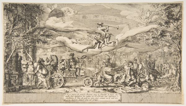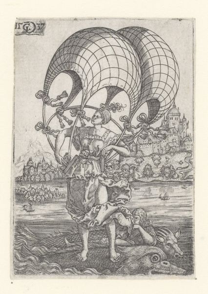 This is an undated woodcut from Hans Burgkmair that depicts a triumphal car with men playing lutes and viola da gambas. Burgkmair was working during a time of great social transformation in Europe; his images often reflect this intersection between the medieval and the emergent Renaissance world, particularly in his relationship with the Habsburg court. This image suggests the lavish spectacle and courtly life associated with the Habsburg patronage. The men on the "Triomfwagen" playing their instruments embody the Renaissance ideal of courtly pastimes, but perhaps also demonstrate how music and art were used to display power and wealth. The expressions on the men's faces are serene, evoking a sense of harmony, but for whom was this harmony intended and at what cost? This woodcut offers a glimpse into a world of spectacle, prompting us to reflect on the social dynamics and cultural values that underpinned its creation.