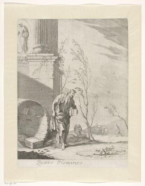 This engraving by Jacques-Antoine Friquet de Vauroze presents us with an allegory of Grammar, depicted as a classical figure pouring water from a vessel onto plants, while leaning on a pedestal with a scroll. This image speaks volumes about the perceived role of grammar: as a nurturing source that cultivates and refines language. The motif of pouring liquid to nourish growth is ancient. We find it echoed in images of fertility goddesses across various cultures, from the Egyptian Isis to the Roman Ceres. In those contexts, this gesture symbolized the cyclical nature of life, death, and rebirth. Here, the symbolic act suggests that grammar is not merely a set of rules but a life-giving force. But consider the subtle shift; the emotional weight of the image turns on the scroll, symbol of knowledge. By associating Grammar with the life-giving symbol of water, the work elevates language to a vital, almost sacred status, engaging our subconscious understanding of growth and cultivation. A cyclical progression, indeed.