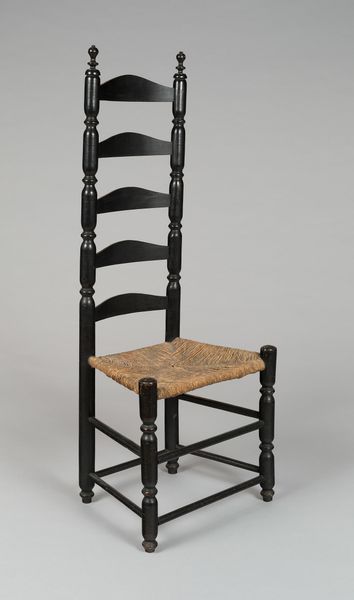 Curator: Here we have Edward William Godwin’s “Sideboard,” crafted around 1867. It's currently held here at the Art Institute of Chicago. What’s grabbing you about this piece? Editor: Initially, the severity of it. It's so angular and almost skeletal in form. And that black... it’s giving a somber, austere vibe. You wouldn’t guess this is for storing dinnerware. Curator: Indeed! Godwin was a major figure in the aesthetic movement, and this piece shows his fascination with Japanese design. He wanted to move away from heavy Victorian styles. It was very radical for the time! Editor: That makes sense when you look at the materials and construction. This looks like stained or ebonized wood, with just the barest hint of hardware—the round metal pulls. Very practical, but also beautiful in its simplicity. I bet the craftsmanship involved in those precise angles was meticulous. Curator: Exactly. The Arts and Crafts influence is quite evident here, advocating for quality and integrity in production. It's also fascinating how Godwin designed for both high-end patrons and more middle-class markets, democratizing design, in a sense. Editor: Right. Thinking about labor practices makes you wonder who built it, how long it took, and what their working conditions were. It is so different from mass-produced furniture today. This "Sideboard" embodies design integrity from material extraction, woodworking process, assembly, labor hours, and all of the maker’s social conditions. Curator: It becomes this physical record, right? Of its historical and social contexts. Its form is definitely at odds with its function, it’s more akin to architectural form in furniture, an interesting departure. Editor: Definitely more austere than other ornate Victorian-era styles, but also richer. I think this piece made me contemplate where things come from, literally and metaphorically. Curator: It’s a testament to the way material culture, craftsmanship, and socio-economic practices intersect within a singular piece of design!