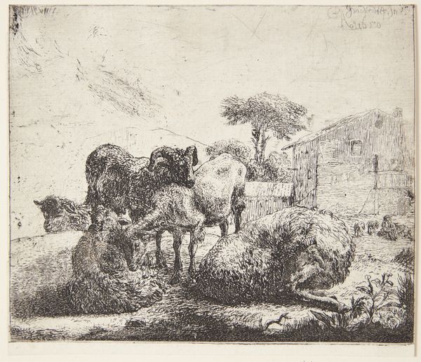 Carl Frederik Bartsch made this print, Hvilende får, using etching, a technique which requires considerable skill. The image begins with a metal plate, likely copper or zinc. The etcher covers the plate with a waxy, acid-resistant ground, then draws an image into the wax with a sharp needle, exposing the metal. The plate is then submerged in acid, which bites into the exposed lines. To achieve the range of tones you see here, Bartsch likely repeated this process several times, covering some lines for shorter or longer periods to vary their depth and darkness. Consider the amount of work involved in creating this image. Bartsch would have needed not only artistic vision but also a deep understanding of chemistry and metallurgy. The contrast between the soft, pastoral subject and the complex industrial processes used to create the image is striking, isn’t it?