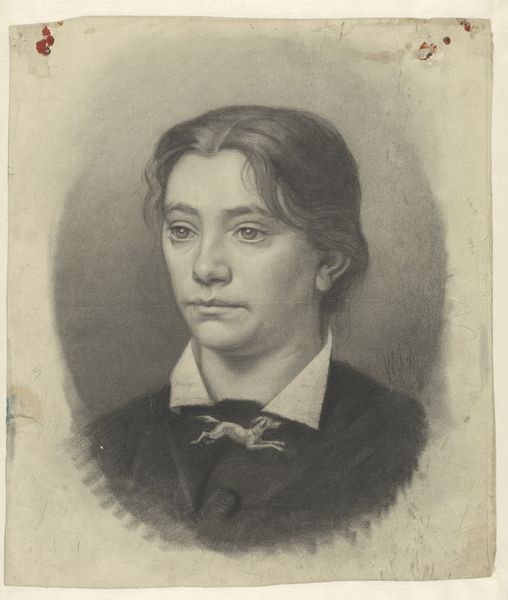 Editor: Here we have Ditlev Blunck’s "Portræt af en ung mand med rød halsklud," created sometime between 1798 and 1853. It’s an oil painting of a young man. There's a sense of quiet contemplation to it, maybe even a bit of melancholy. What are your initial observations of the piece? Curator: Formally, the work is dominated by a limited color palette, drawing attention to subtle gradations in skin tone and the stark contrast between the white collar and the dark jacket. Notice how the artist directs the viewer’s eye to the face through the soft blurring of the background and the focused lighting. The subject's gaze, directed off to the side, creates a dynamic tension within the two-dimensional space. How does this internal tension affect your understanding? Editor: I hadn’t considered the impact of the limited color. It does make me focus on his face and the direction of his gaze, as you pointed out. It's almost theatrical, in a way. But what about the unfinished edges? They seem so raw and abrupt. Curator: The rawness, the unfinished quality, emphasizes the materiality of the painting itself. We are forced to consider the artwork as an object, a constructed reality, rather than a seamless representation of a person. The visible brushstrokes contribute to this sense of construction, highlighting the artist’s process. The use of shape is deliberate and creates planes of tension, even conflict. What is the emotional effect on you, observing these construction elements? Editor: I guess I'm starting to see it not just as a portrait, but as a study of form and technique. It feels like it's about more than just the young man. Curator: Precisely. The painting, in its very composition and execution, invites us to question the nature of representation itself. A piece made, not of, a life. Editor: I never thought about it that way! Now, seeing the planes and the brushstrokes and how light is used to give importance, it shifts the entire piece. Curator: It is a useful tool to unlock many aspects of an image, a lens for new understanding and appreciating art!