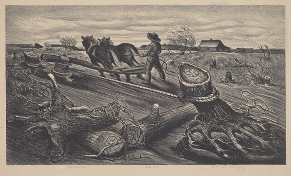 William LeRoy Flint created "Sun and Dust", this image, using etching techniques. It’s all about the process, right? The way the light catches the barbed wire fence, casting those stark shadows, it's like Flint is digging into the very bones of the landscape. I love how the texture of the earth seems to rise from the surface, almost like you could reach out and feel the grit between your fingers. And that abandoned plough or harvester, sitting heavy and still under the sun. There’s a real sense of place here, a feeling of time standing still. You can almost hear the wind whistling through the empty fields, a silent testament to the cycles of nature and the hard work of farming life. Artists like Flint and someone like Gustave Baumann share a love for humble subjects, an appreciation for texture, and a vision for the beauty in decay. Art is so good at showing us how to see the world anew.