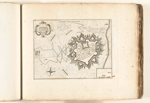 This is an anonymous plan of Carmagnola, made in 1726. The most striking feature is the star-shaped fortification surrounding the city, a common motif in military architecture of the time, symbolizing protection and power. This symbol of the star-shaped fortress has its roots in ancient defensive structures, evolving over centuries. From simple palisades to complex, geometric designs, each era leaves its mark, layering meaning onto the symbol. This shape isn't merely functional; it's a potent visual metaphor. We can see it echoing in Renaissance city plans, where the star fort embodies the era's obsession with order and control, or even in religious symbols where stars often represent divine guidance or protection. How has the collective unconscious shaped our understanding of the star, imbuing it with a sense of security? This plan is not just a technical drawing; it's a manifestation of human aspirations for safety, order, and dominance. It embodies the cyclical nature of history, where symbols resurface, transformed by new contexts, yet still resonating with primal emotions and psychological needs.