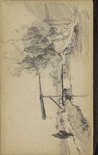 Willem Witsen made this sketch of Amsterdam with graphite on paper sometime in his lifetime, which stretched from 1860 to 1923. Although quickly rendered, there is much here to unpack in terms of the social conditions that shape artistic production. In the late 19th century, Amsterdam was a city undergoing rapid industrialization and urbanization. Witsen, like many artists of his time, was interested in capturing the changing face of the city and its impact on everyday life. In addition, we might consider the institutional history of art education at this time. Artists were increasingly trained in academies and encouraged to develop their own unique styles. This sketch, with its loose lines and emphasis on atmosphere, reflects a shift away from traditional academic styles and towards a more modern, impressionistic approach. To understand this piece better, we might look to the artist's letters or the exhibition history of the time to consider the meaning of art as something that is contingent on social and institutional context.