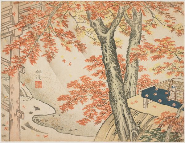 Utagawa Kunisada created this woodblock print, “Rain of the Fifth Month,” during the Edo period in Japan. Woodblock prints like this one were often produced for mass consumption, reflecting the tastes and interests of the urban middle class. The image shows a rural scene in the midst of a heavy downpour. We see travelers, a horse, and various figures seeking shelter. The rain, rendered through vertical lines, dominates the composition. It’s worth asking: how did weather and geography influence Japanese culture and its artistic traditions? The rainy season was crucial for rice cultivation, a cornerstone of the Japanese economy. Kunisada's print, like many ukiyo-e works, offers a glimpse into the everyday life and values of the time. Further research into the social and economic conditions of Edo-period Japan, as well as the history of ukiyo-e printmaking, can deepen our understanding of this beautiful and evocative work.
