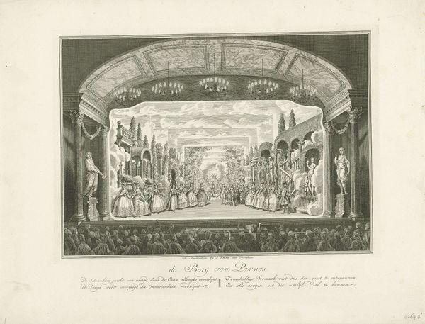 Jan Punt created this print of a theater stage set design in the eighteenth century. Here we see Mount Parnassus, abode of Apollo and the Muses, goddesses of the arts. The mountain, an ancient symbol, appears throughout history, from religious sites to Romantic landscapes. In ancient Greece, it represented the peak of intellectual and artistic achievement, while in medieval times, mountains often symbolized spiritual ascent and divine revelation. Think of climbing a mountain as a metaphor for our aspirations, whether artistic, intellectual, or spiritual. The theater, itself, is a stage for human drama. These elements together resonate with our collective unconscious, engaging viewers on a deep, subconscious level. Through theater we witness intense emotional states and contemplate the complexities of human experience. The image connects us to a past world, one where art and intellect flourish, and reveals how the symbols and motifs are constantly resurfacing, evolving, and finding new meanings in different historical contexts.