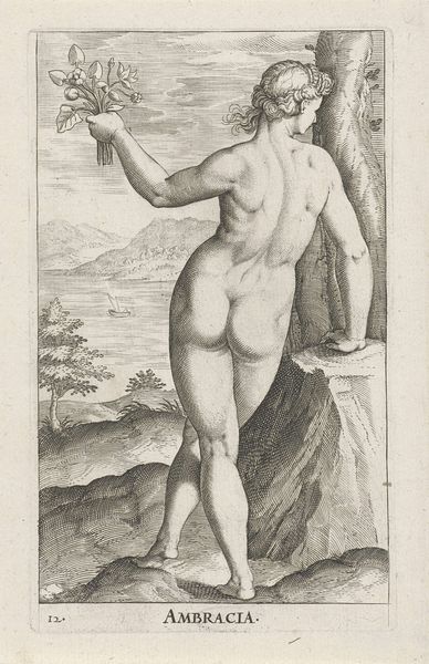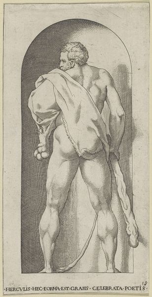 Curator: Let's turn our attention to Jacob Binck’s “Ceres,” an engraving that dates somewhere between 1510 and 1569 and is housed right here at the Rijksmuseum. Editor: My first thought is one of cool austerity. The monochromatic engraving style lends a severity to the otherwise classical figure, an unsettling blend of sensuality and hard labor. Curator: Indeed. Binck presents Ceres, the Roman goddess of agriculture, in a complex visual language steeped in Northern Renaissance allegory. We must consider the significance of her attributes – the sickle, the bundle of wheat atop her head – within the socio-political landscape of 16th-century Europe. How do these symbols relate to notions of labor, sustenance, and female power within a patriarchal structure? Editor: What’s compelling is how starkly the production reads: it's an engraving, which speaks to the reproductive potential inherent to the medium. The fine, etched lines were painstakingly made. She herself looks robust, perhaps reflecting not an idealized form, but an image of fertility rooted in actual, physical work, almost challenging typical art and gender roles through labor. Curator: Absolutely, and what does the inclusion of the snake at her feet signify? Is it a symbol of fertility, renewal, or perhaps a darker allusion to the Fall and the disruption of Eden? These images resonate in many cultural and political dialogues across the centuries. Editor: Maybe it represents an old way of producing things being threatened or even crushed, since she's right above it with what looks like a harvesting tool. The tension within the work reflects how materials themselves—wheat, metal, even the reproductive potential of the engraved image—intersected within social conditions. Curator: Viewing “Ceres” allows for deeper interrogation of our contemporary relationships with nature, labor, and representation itself, how female archetypes take on these loaded attributes and what those representations say about the place women occupy in the world of labor and production. Editor: Examining this image reinforces just how intertwined material processes are with historical power dynamics. Looking at it from that angle shifts my thinking every time.
