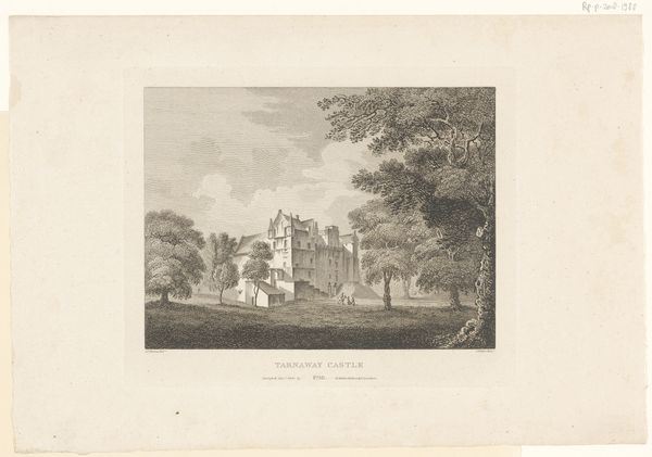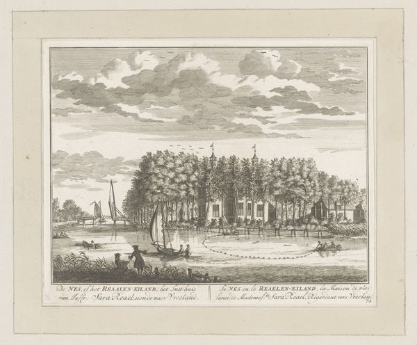Jan (I) Smit's "Gezicht op Kasteel Rosendael," an etching, captures a castle enveloped in a meticulously designed garden. The visual composition is defined by the stark contrast between the dark, dense foliage and the lighter stone architecture. Notice how Smit used line work, with delicate, precise etching strokes to create texture and depth. This meticulous detailing guides our eyes across the flat plane, mapping a visual journey through the landscape. The castle itself, framed by trees, appears almost as a theatrical backdrop. The symmetrical arrangement of the garden suggests an interplay of control and artifice. This reflects a cultural interest in imposing order onto nature. The etching, through its very form, invites a deeper contemplation on themes of nature and the built environment. It reminds us that art, even in its representational form, is always a carefully constructed reality.