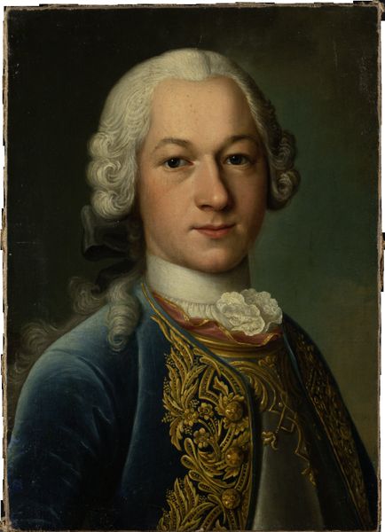 Editor: Here we have Jean-Marc Nattier's "Portrait of the Frankfurt Banker Johann Georg Leerse," painted in 1749 using oil. It's hard to ignore the sheer opulence of his clothing! What can you tell me about the world this portrait inhabits? Curator: This portrait presents a fascinating window into the intersection of wealth and power during the Rococo period. Beyond just opulent clothing, what do you see that hints at the social dynamics at play? Editor: I guess I see a kind of formal reserve. He's clearly wealthy, but there isn’t much expression or emotion. It feels very…controlled. Curator: Precisely! Think about the context. Frankfurt was a major financial center, and this portrait served as a visual representation of Leerse's status. These commissions legitimized status. How do you see that operating now? Do the powerful use portraits or other mediums in the same way today? Editor: Maybe less painted portraits and more carefully curated social media. But the aim is the same – projecting a particular image of success and power. Curator: Exactly. This painting isn't just about Leerse as an individual; it's about solidifying his place within the societal hierarchy of the time. Notice the wig, the tailored coat, the gold details - these are all carefully chosen signifiers. Editor: So, understanding the portrait also means understanding the financial and social structures of 18th-century Frankfurt? Curator: Absolutely. By unpacking the symbolism and considering the social context, we can really start to understand the complex interplay of art, power, and identity that defined that era – and continues to resonate today. Editor: That gives me a lot to think about. Thanks, I'm seeing much more here now than just fancy clothing! Curator: And it underlines how artistic expression and social power always mirror one another in the world.