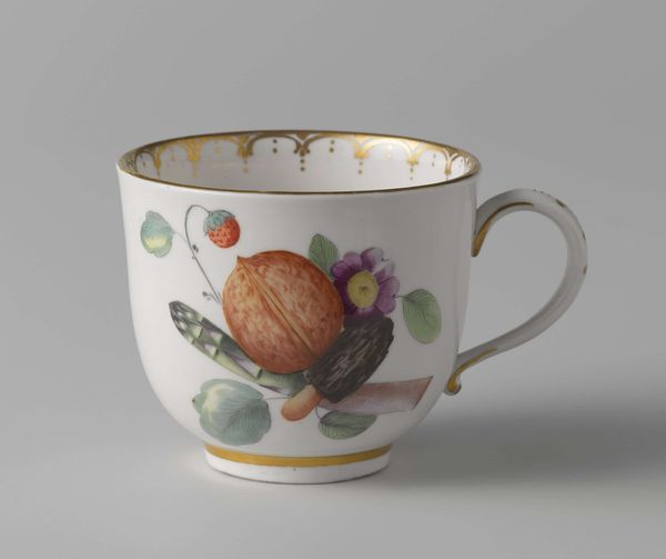 This cup and saucer was produced by the Porseleinfabriek Den Haag. The painted decoration on porcelain tableware such as this was a luxury product, produced by a factory in The Hague. We can assume it would have been available only to a wealthy clientele. The Rococo-style floral swag at the top of the cup indicates the high social status of its owner. But it's the image of the turkeys that is most striking. Turkeys were brought to Europe from the Americas in the 16th century. Because of their exotic origins, they quickly became popular as ornamental birds. They were kept in parks and gardens to demonstrate the wealth and sophistication of their owners. Here, the painter has depicted the turkey to associate its owner with those same qualities of wealth and sophistication. In order to better understand the economic implications of the commercial production of porcelain, or the cultural significance of the image of a turkey, a social historian might turn to sources such as archival records and trade statistics to understand the culture that shaped the artwork.